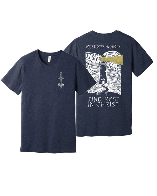 Restless Hearts Find Rest in Christ Short OR Long Sleeve Navy Tee